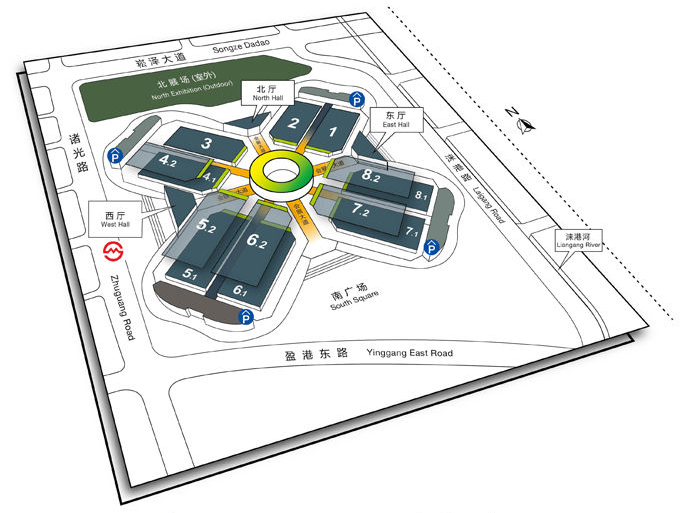 上海国家会展中心地处长三角核心腹地,坐落在上海虹桥商务区核心区西部,与虹桥交通枢纽直线距离仅1.5公里,通过空中连廊、地下通道及地铁2号线与上海虹桥火车站、虹桥机场紧密相连,周边高速路网四通八达,1至2小时可到达长三角各主要城市,航空2至3小时可直达亚太主要经济城市。